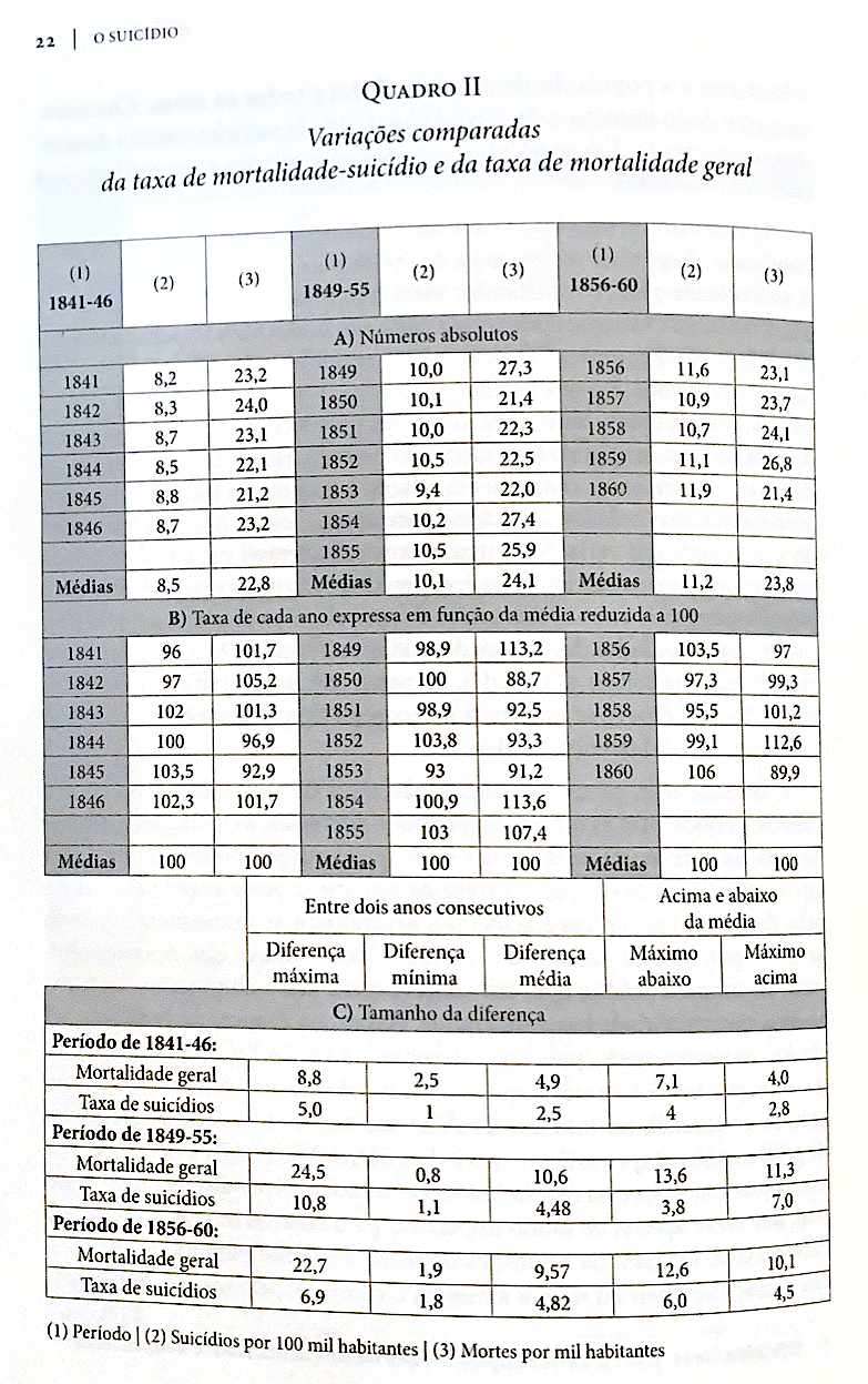 DURKHEIM, Émile. 1977. O suicídio: estudo sociológico. (Trads.: Luz Cary; Margarida Garrido; J. Vasconcelos Esteves) Portugal/Brasil: Editorial Presença/Livraria Martins Fontes, p.18-9. [Português brasileiro]